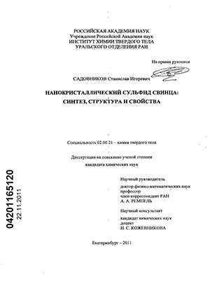Актуальность темы. Сульфид свинца широко применяется в инфракрасной технике, микро- и оптоэлектронике. Его электронные свойства, как и свойства других полупроводников, существенно меняются при переходе из крупнокристаллического состояния в наноструктурированное. Это открывает новые возможности применения оптических свойств наноструктурированного PbS в видимом и инфракрасном диапазонах спектра. Наноструктурированный сульфид свинца, преимущественно в виде пленок, может использоваться для расширения спектрального диапазона ИК-фотоприемников и детекторов, предназначенных для обнаружения тепловых источников, в фотоумножителях и приборах ночного видения, в солнечных батареях и оптических переключателях