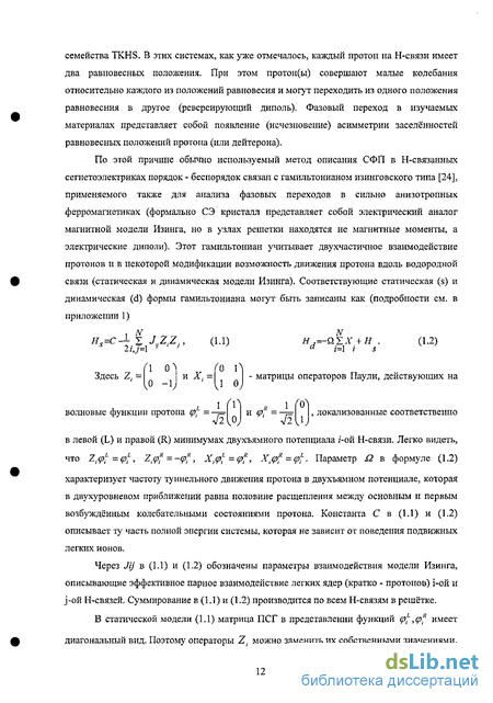 1.1 Микроскопическое описание структурного фазового перехода в Н-связанных сегнетоэлектриках типа порядок-беспорядок. 9