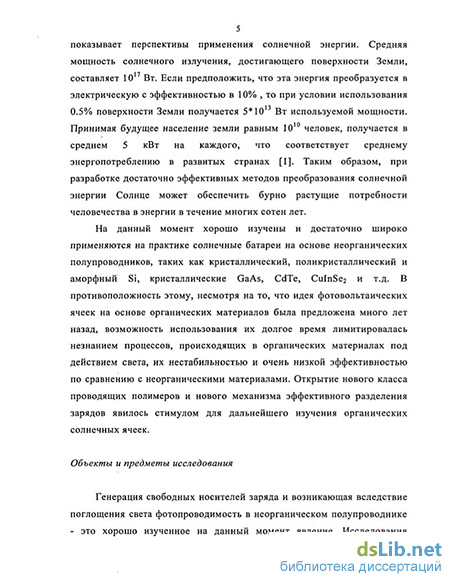 Толстов Илья Владимирович. Фотовольтаический эффект в гетеросистемах на основе поли(2-метокси-5-(2'-этил-гексилокси)-П-фениленвинилена : Дис. ... канд. хим. наук : 02.00.21 Москва, 2005 123 с. РГБ ОД, 61:05-2/347