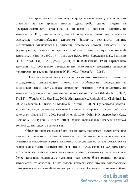 1.1. Личность при алкогольной зависимости: проблемы изучения и классификации 14
