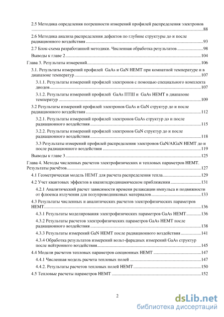 В настоящее время в современной микроэлектронике активно используются приборы на основе GaN. Данный материал имеет широкую запрещенную зону, поэтому обладает некоторыми свойствами, присущим диэлектрикам [4 - 9]. GaN имеет максимальные значения критериев Джонсона и Балига (специальные критерии, характеризующие эффективность применения полупроводника в определенной области микроэлектроники, см. п. 1.2.5) [4], исходя из чего можно предположить, что полевые транзисторы на основе соединения GaN/AlGaN будут наиболее радиационно-стойкими по сравнению с классическими транзисторами на основе GaAs [6]. Сравнение работы HEMT на основе GaAs и GaN так же приведено в параграфе 1.2. Параграф 1.3 посвящен современным методам исследования параметров гетероструктур и транзисторов на их основе. В параграфе описываются методы вторичной ионной масс-спектрометрии (ВИМС), электрохимическое профилирование, вольт-фарадное профилирование. Данные методы позволяют проводить анализ наиболее важных параметров полупроводниковых слоев – их толщин и уровней легирования, позволяют определять концентрацию электронов и/или примесей. Также, в параграфе рассматривается DLTS метод (Deep Level Transient Spectroscopy), позволяющий проводить исследования дефектов с глубокими уровнями в различных полупроводниковых структурах.