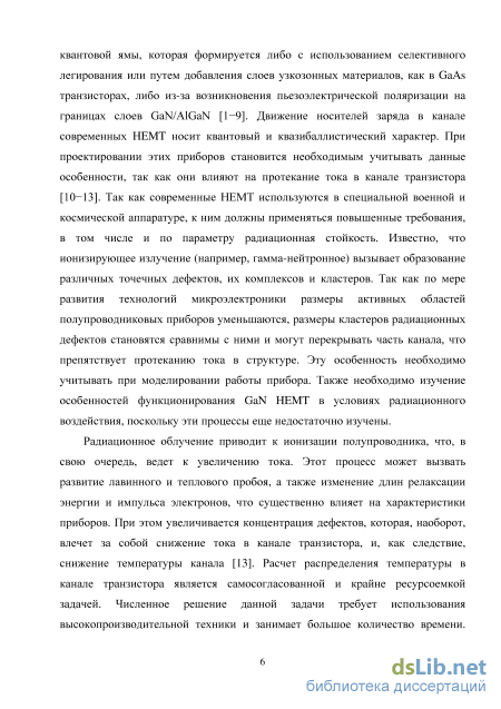 Глава представляет собой краткий обзор имеющейся в литературе информации о HEMT - High Electron Mobility Transistors (транзисторы с высокой подвижностью электронов) [1, 2]. Особое внимание в главе уделяется особенностям работы полевых транзисторов в условиях радиационного воздействия. В HEMT часто используют -легирование – внедрение тонкого легированного слоя в полупроводниковые кристаллы в полупроводниках, выращенных эпитаксиальными методами [1]. Толщина слоя составляет 1 нм [1]. Работа таких приборов, особенно на GaN структурах, в которых квантовая яма образуется не с помощью -легирования, а из-за спонтанной поляризации на границе раздела выращенных полупроводников GaN/AlGaN, в условиях гамма-нейтронного воздействия еще недостаточно изучена [3].