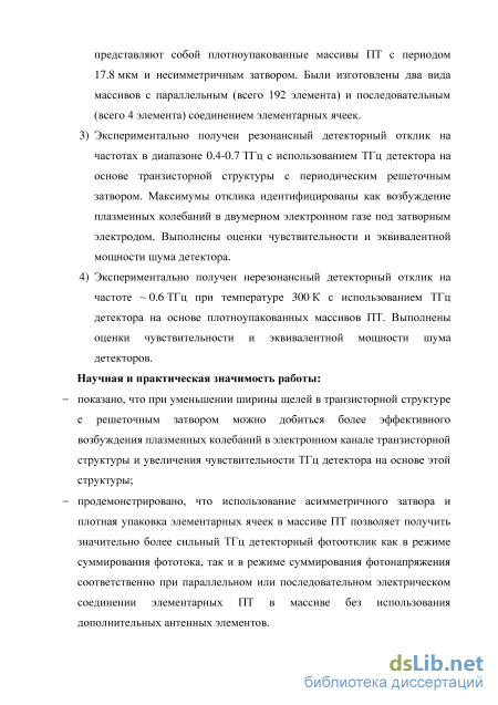 - Анализ исследований терагерцового отклика плотноупакованного массива параллельно соединенных полевых транзисторов