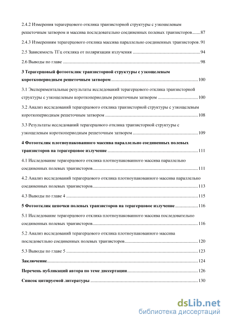 5 Фотоотклик цепочки полевых транзисторов на терагерцовое излучение 116
