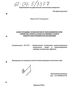 Актуальность темы. Автоматизация промышленности, в особенности сложных и опасных технологических процессов, остро нуждается в средствах, позволяющих получить информацию о составе газовых сред. Подобные устройства должны обеспечивать выборочную реакцию на определенные компоненты среды, обладать высокой надежностью и воспроизводимостью результатов. Современное развитие научной мысли предоставляет множество способов и методик для реализации данной проблемы, поэтому, как правило, решающим и определяющим критерием выбора является объем затрат на создание и эксплуатацию необходимого оборудования. В случаях, когда требуется сверхточное измерение и контроль, например в опасных производствах или в условиях специализированных лабораторий, вопрос о стоимости и габаритах средств измерения не так актуален. Однако находится множество случаев, когда требуются миниатюрные, дешевые, простые в использовании и обслуживании системы, пригодные для использования в любых условиях, от систем кондиционирования воздуха внутри жилых помещений до систем безопасности на складах и хранилищах. Сенсорные элементы таких систем должны обладать максимально высокой чувствительностью, избирательностью, стабильностью свойств и технологичностью в производстве. В случае охранной и предупредительной сигнализации приборы также должны обладать миниатюрностью для скрытности и низким энергопотреблением для увеличения срока автономности. Наличие таких приборов, например датчиков утечки бытового газа, в каждом доме повышает безопасность и качество жизни.