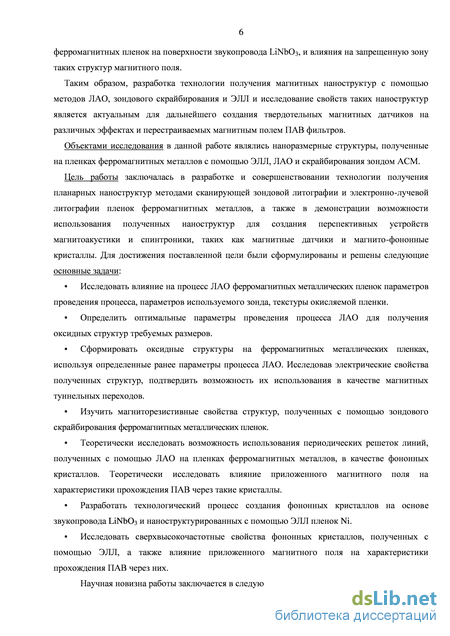 Изученные фононные структуры на пленках ферромагнитных металлов могут в дальнейшем быть использованы для создания бесконтактно перестраиваемых ПАВ фильтров. было изготовление и изучение свойств наноразмерных структур на ферромагнитных металлических пленках с использованием двух литографических методов: сканирующей зондовой литографии (использовались два вида – зондовое окисления и зондовое скрайбирование) и электронно-лучевой литографии. У каждого метода есть свои достоинства и недостатки, и поэтому для реализации каждого вида структур был выбран свой метод. Все полученные и изученные наноструктуры являются перспективными для использования в устройствах спинтроники и магнитных датчиках.