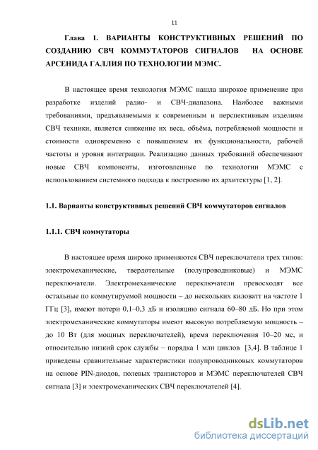 Глава 1. Варианты конструктивных решений по созданию СВЧ коммутаторов сигналов на основе арсенида галлия по технологии МЭМС 11