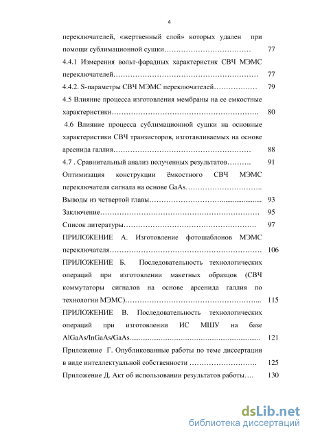 3.5 Этапы изготовления МИС на основе арсенида галлия и МЭМС переключателей 62