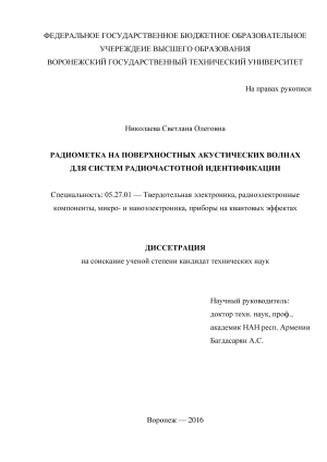 Целью диссертации является повышение эффективности (дальности и достоверности считывания информации) систем радиочастотной идентификации на поверхностных акустических волнах для экстремальных условий эксплуатации.