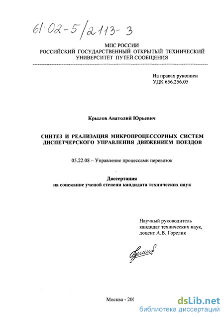 1. Проектирование микропроцессорных систем диспетчерского управления движением поездов 8