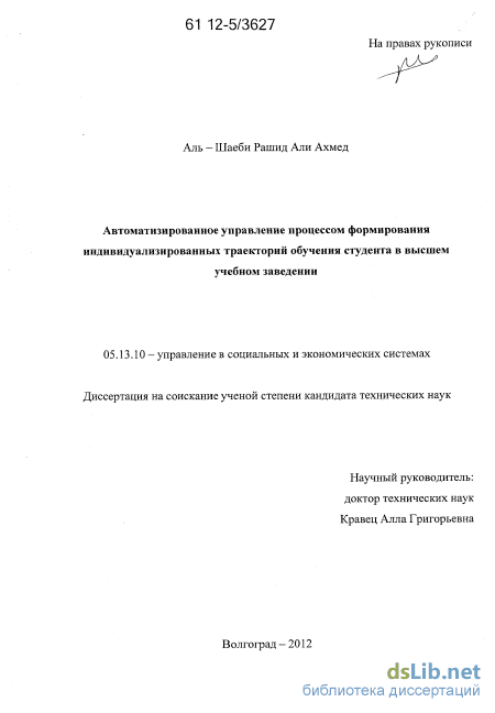 3 Автоматизированное управление процессом формирования индивидуализированных траекторий подготовки студента в высшем учебном заведении 58