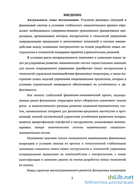 Актуальность темы исследования. Усиление рисковых ситуаций в финансовой системе в условиях глобального экономического кризиса определяет необходимость совершенствования применяемых финансовыми операторами организациями методов, инструментов и технологий управления операционными процессами и качественных изменений в системе взаимодействия между основными контрагентами на основе разработки новых инструментов и технологий поддержки принятия управленческих решений.