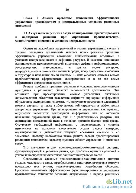 Глава 1 Анализ проблемы повышения эффективности управления производством в неопределенных условиях рыночных отношений 10