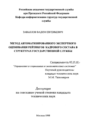 Настоящая диссертационная работа посвящена решению задачи формализации процесса подбора и расстановки кадров на основе рейтингового метода в сфере государственной службы.