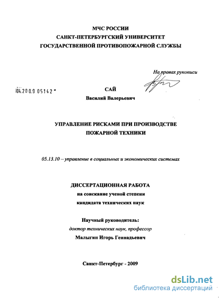Актуальность темы. Необходимость перемен в области оценки рисков при производстве пожарной техники в современных экономических условиях объясняется и новыми задачами, стоящими перед Министерством Российской Федерации по делам гражданской обороны, чрезвычайным ситуациям и ликвидации последствий стихийных бедствий (МЧС России), и изменяющимся характером производственной деятельности, и рыночными методами закупок изделий пожарной техники.