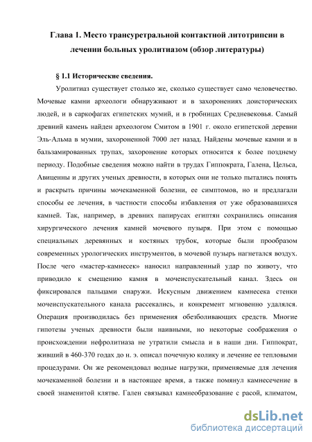 Глава 1. Место трансуретральной контактной литотрипсии в лечении больных уролитиазом (обзор литературы) .10