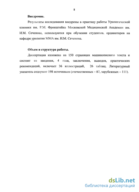Материалы диссертационной работы были доложены на научно-практической конференции кафедры урологии ММА им. И.М. Сеченова (сентябрь 2009 г.);