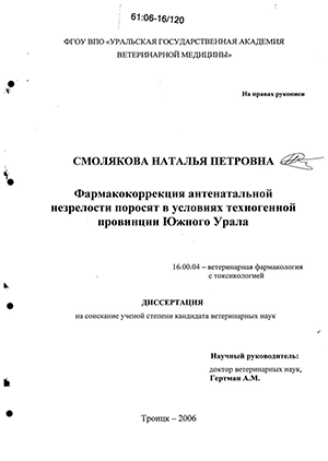 Актуальность темы. Продовольственная независимость России на современном этапе должна основываться на высокой продуктивности животных, сохранности новорожденных и получении чистой в экологическом аспекте продукции. Свиноводству, как наиболее скороспелой отрасли животноводства, в решении этих задач принадлежит одно из ведущих мест. Однако в регионе Южного Урала сдерживающим звеном в получении жизнеспособных поросят является ухудшение экологической обстановки в результате прогрессирующего насыщения окружающей среды токсическими элементами.