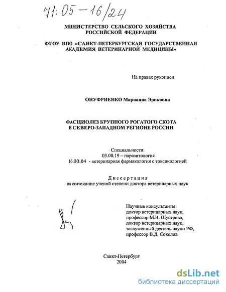 4.Методические рекомендации «Современные методы диагностики фасциолеза крупного рогатого скота» (утверждены северо-западным научно-методическим центром РАСХН, 2004 г).