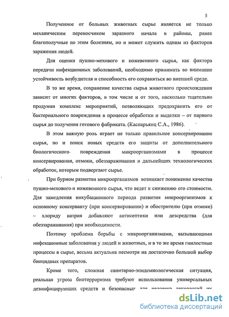 В то же время, сохранение качества сырья животного происхождения зависит от многих факторов, в том числе и от того, насколько тщательно продуман комплекс мероприятий, позволяющих предохранить его от бактериального повреждения в процессе обработки и выделки - от парного сырья до получения готового фабриката. (Каспарьянц А., 1986).