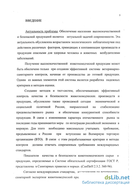 Разработка критериев и методов оценки безопасности и качества продовольственного сырья и продукции животного происхождения является одним из важных элементов стандартизации и сертификации указанной продукции.