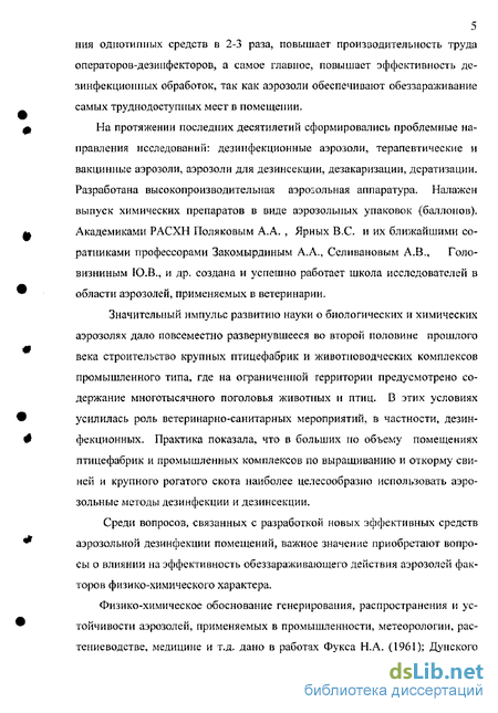 Вопросами дезинфекции в медицине и ветеринарной медицине занимались многие исследователи как отечественные (Шепелевский Е.А., 1895; Мазуров Г.А., 1914; Окуневский ЯЛ, 1929; 1933; Вашков В,И., 1954; 1974; Шандала М.Г., 2005; Поляков А.А., 1948; 1989; Ярных B.C., 1955;1990; Зако-мырдин АЛ., 1960; 2005; Смирнов A.M., 1965; 2005; Боченин Ю.И., 1968; 2005; Березнев AJL, 1970; 1990; Чкония Т.Т., 1971; Бутко М.ПМ 1981; 2005; Попов Н.И., 2002; 2005; Harry E.G., 1956; Stciger А., 1981; Russcl A.D., 1982; Trcnner P., 1985; Furuta 1С, 1993; и др.
