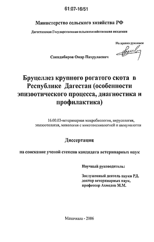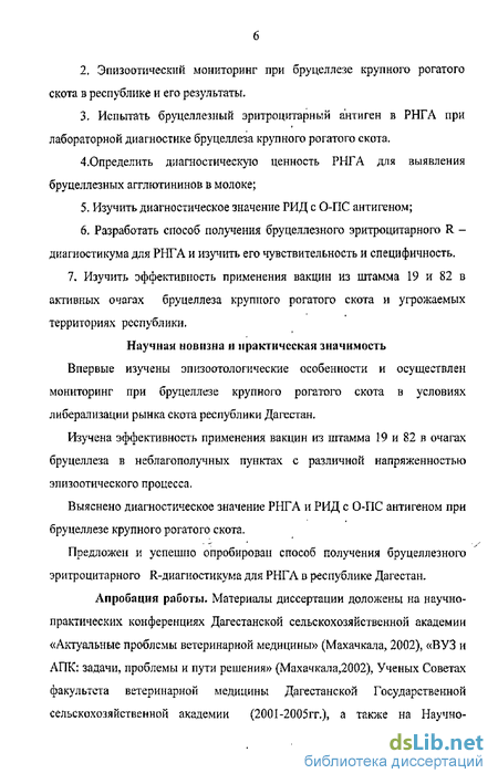 Цель работы: Изучить особенности развития эпизоотического процесса и совершенствовать меры специфической профилактики и борьбы с бруцеллезом крупного рогатого скота в республике Дагестан.