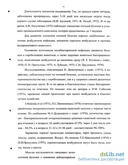 Так, по сообщениям П.А.Триленко с соавт. (1956); P.Gots (1959); D.Kelman (1969) отечной болезнью заболевают поросята преимущественно отъемного возраста.