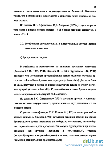 2.2. Морфология экстраорганных и интраорганных сосудов легких домашних животных 12