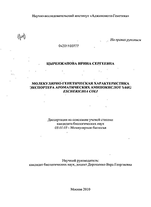 Актуальность проблемы. Значительные успехи последних десятилетий в производстве аминокислот связаны, прежде всего, с конструированием микроорганизмов-продуцентов методами метаболической инженерии. Такой способ конструирования включает в себя последовательное целенаправленное изменение метаболизма клетки для раскрытия ее возможностей к сверхсиитезу конкретной аминокислоты и должен быть основан на молекулярно-генетической характеристике участвующих в нем элементов.