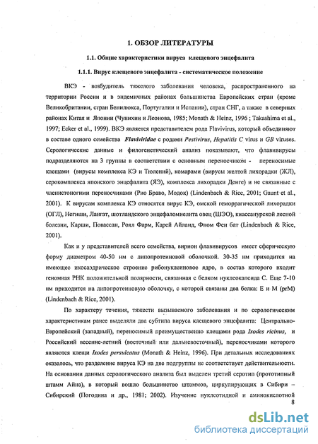 1.1. Общие характеристики вируса клещевого энцефалита 8