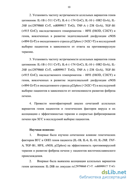 Состояние научной разработанности проблемы. Несмотря на значительное число исследований, посвященных поиску взаимосвязи между ОНП генов-кандидатов и темпами развития фиброза печени и ответом на ПВТ, достоверные данные получены для небольшого числа генов. В ряде