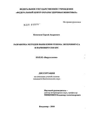 Научная новизна и теоретическое значение. Разработаны методы ОТ ПЦР для выявления генома энтеровируса КРС с использованием внутреннего контрольного образца (ВКО) и метод выявления генома парвовирусов КРС 1, 2, 3 в образцах вируссодержащего материала с помощью полимеразной цепной реакции и секвенирования.