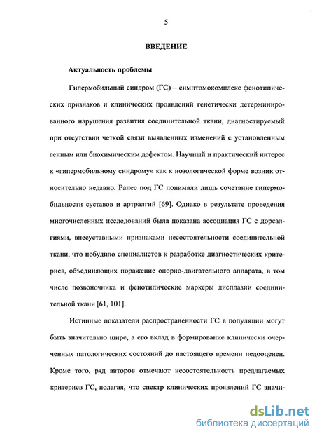 Таким образом, актуальность и мультидисциплинарность изучаемой проблемы не вызывает сомнений. Терминологическая неопределенность, широкий спектр клинических проявлений и потенциальных осложнений ГС, важность изучения ассоциации дорсалгии с дополнительными фенотипическими маркерами ДСТ, анализа кардиальных проявлений ГС во взаимосвязи с поражением опорно-двигательного аппарата и генетической детерминантой ДСТ служат основой проведения комплексного клинико-инструментального и генетического анализа проявлений ДСТ при ГС.