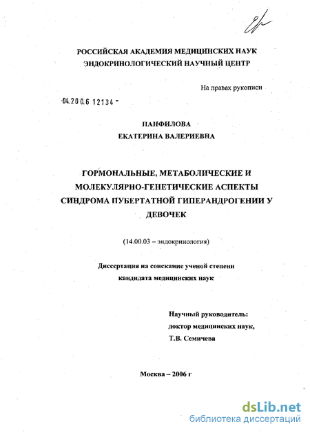 Цель настоящей работы. Оценка роли клинических, гормональных, метаболических и молекулярно-генетических показателей и диагностике гиперандрогении у девочек.