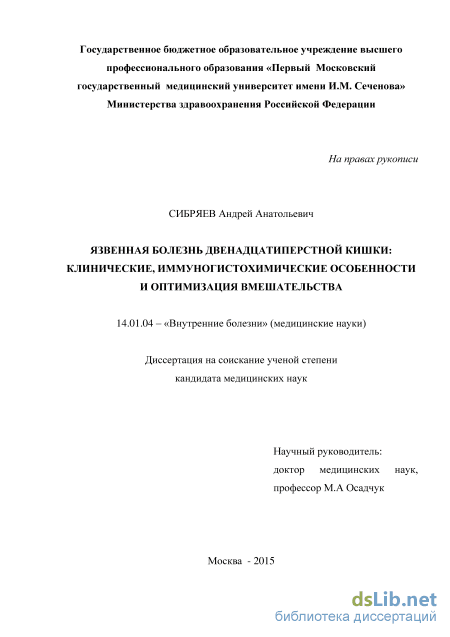 - Оценка иммуногистохимических показателей в периоде обострения язвенной болезни двенадцатиперстной кишки