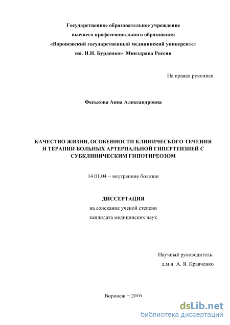 1.10. Субклинический гипотиреоз и артериальная гипертензия 39