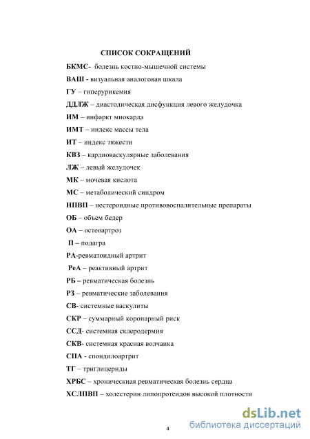 4.1 Остеоартроз-суставной синдром, сопутствующая патология и факторы риска 57