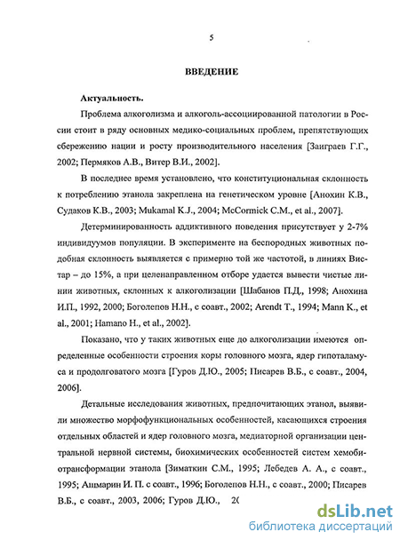 Частота детерминированного аддиктивного поведения в популяции людей составляет от 2% до 7%. В эксперименте на беспородных животных подобная склонность выявляется с той же частотой у крыс линии Вистар - до 15%, а при селекции удается вывести чистые линии животных, склонных к алкоголизации [Анохина И.П., 2000; Боголепов Н.Н. с соавт., 2002; Мхитаров В.А., 2008; Mann К. et а!., 2001; Hamano Н. et al., 2002]. Показано, что у таких животных еще до алкоголизации имеются существенные особенности строения коры головного мозга, ядер гипоталамуса и продолговатого мозга [Писарев В.Б., с соавт., 2004, 2006; Гуров Д.Ю., 2005].