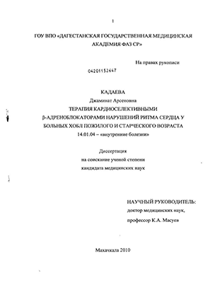 Апробация работы. Результаты исследования доложены на: III республиканской научно-практической конференции «Проблемы пульмонологии: современные подходы к диагностике и лечению обструктивных заболеваний легких» (Махачкала, 2008), 10-м конгрессе Росс.общества Холтеровского Мониторирования и Неинвазивной Электрофизиологии (РОХМИНЭ) и 3-м Российском конгрессе «Клиническая электрокардиология» (Санкт-Петербург, 2009), четвертом Национальном конгрессе терапевтов (XX Съезд российских терапевтов) (Москва, 2009), XVII Российском национальном конгрессе «Человек и лекарство» (Москва, 2010), 2-й всероссийской конференции гериатров «Особенности здоровья пожилых. Организационные аспекты гериатрической помощи» (Махачкала, 2010), на заседании республиканского общества терапевтов (Махачкала, 2008).