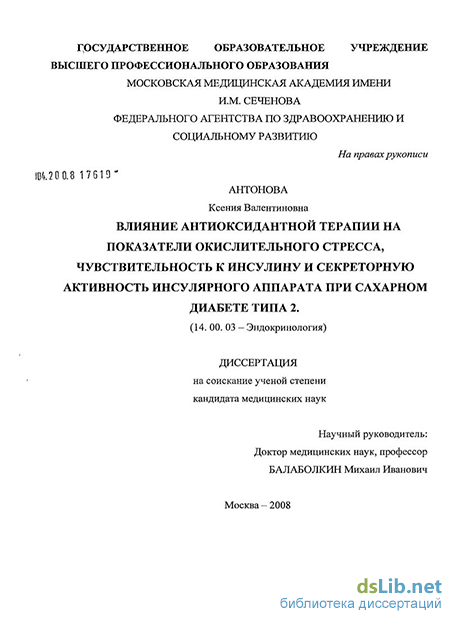 Проводились исследования, результаты которых свидетельствуют в пользу окислительного стресса как пускового механизма в прогрессировании инсулинорезистентности и снижении инсулиновой секреции при сахарном диабете типа 2 ( Miwa I., Ichimura N., Sugiura M. et al. 2000.; Kaneto H., Xu G., Song К H. et. al. 2001., Evans J., Goldfine I., Maddux B. 2003). Следует отметить, что по результатам Фрамингемского исследования, системный окислительный стресс ассоциирован с инсулинорезистентностью (Meigs J., Larson М , Fox С. et al, 2007)
