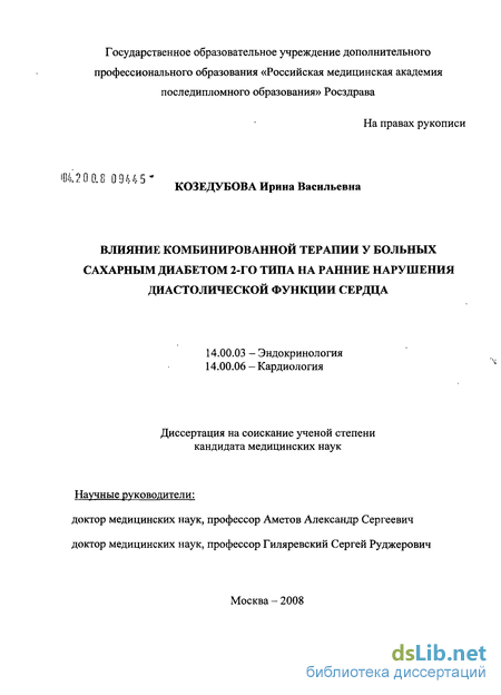 Диастолическая дисфункция, как наиболее раннее проявление поражения миокарда; у больных сахарным диабетом 2 типа.в зависимости от степени-тяжести, компенсации углеводного обмена и продолжительности заболевания, все еще остается до конца не изученной.