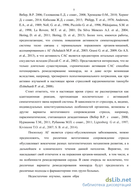 Патогенетическим звеном, сковывающим в одну цепь стресс и АГ, видится индуцированное стрессом расстройство регуляции АД в организме человека. Чаще всего под этим подразумевается повышенная активность симпатоадреналовой системы, вклад которой в развитие и прогрессирование этого заболвания разносторонне изучается более 40 лет (Мартынов А.И. с соавт., 2000; Провоторов В.М. с соавт., 2000; Шляхто Е.В. с соавт., 2003; Алиева А.М. с соавт., 2005; Назарова О.А. с соавт., 2005; Вебер, В.Р. 2006; Голованова Е.Д. с соавт., 2008; Хромцова О.М., 2010; Конради А.О., 2012; Philipp, T. et al., 1978; Anderson, E.A., et al., 1989; Noll, G. et al., 1996; Piccirilo G. et al., 1996; Pikkujamsa, S.M. et al., 1998; La Rovere, M.T. et al., 2001; Da Silva Menezes A.J. et al., 2004; Hering, D. et al., 2011; Hering, D. et al., 2013; Hering, D. et al., 2014).