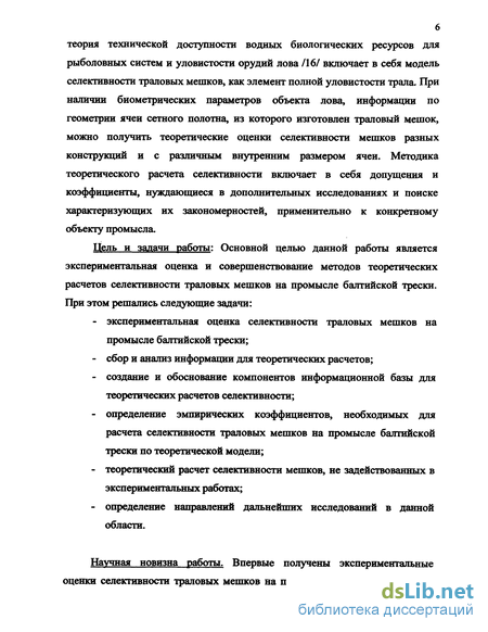 Цель и задачи работы: Основной целью данной работы является экспериментальная оценка и совершенствование методов теоретических расчетов селективности траловых мешков на промысле балтийской трески. При этом решались следующие задачи: