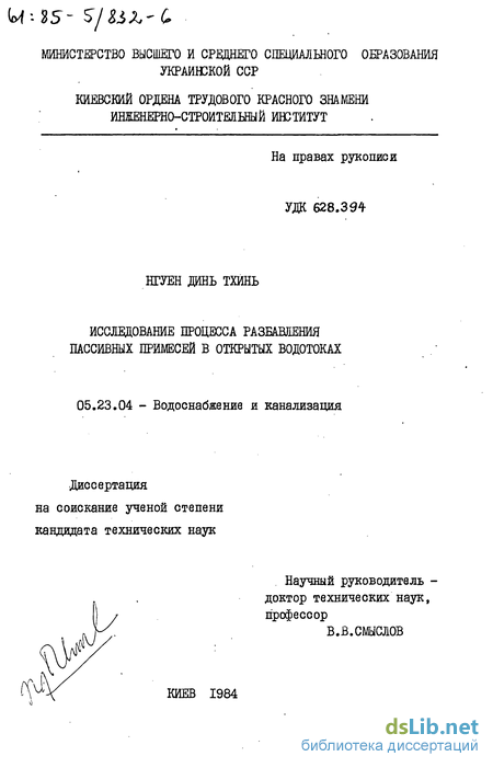 Трудами советских ученых были разработаны способы анализа процесса разбавления сточных вод, которые изложены в работе Государственного гидрологического института СССР "Методические основы антропогенного влияния на качество поверхностных вод" [в б] , а также в инструктивных материалах ряда организаций (Министерство милиорации и водного хозяйства СССР, Министерство рыбного хозяйства СССР, Госстрой СССР).