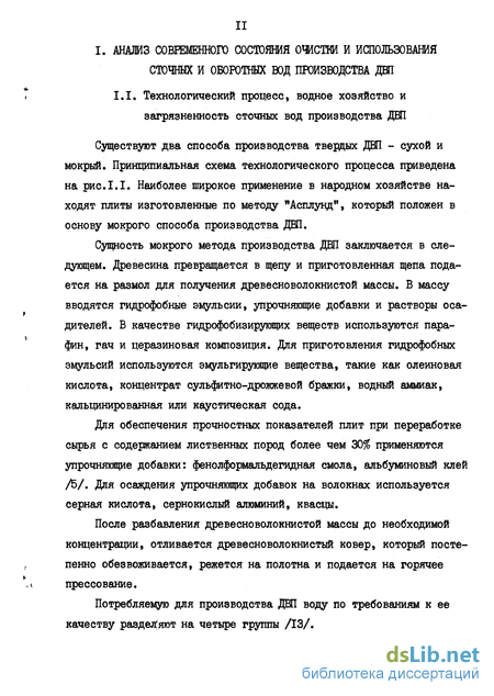 Сточные воды производства ДШ загрязнены мелкодисперсным древесным волокном, сахарами, летучими жирными кислотами, продуктами частичного распада лигнина и целлюлозы и т.п. В сточные воды также попадает часть химических веществ, применяемых в технологическом процессе, в том числе фенолформальдегидные смолы, парафин, серная кислота и другие. Комплекс перечисленных веществ образует очень устойчивую коллоидную систему. Низкая рН воды, высокая температура и концентрация загрязнений в значительной мере осложняют применение классических методов и сооружений для очистки таких сточных вод и препятствуют глубокой очистке воды /7,8,9,10,11,12/. Это осложняет использование очищенной воды в технологическом процессе. Классические схемы обработки сточных вод производства ДШ не предусматривают утилизации образующихся осадков.