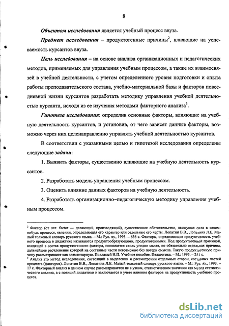 Глава 1. Организационно-педагогические задачи управления учебным процессом. Глава 2. Педагогический эксперимент по использованию факторного анализа для повышения успеваемости курсантов вуза.