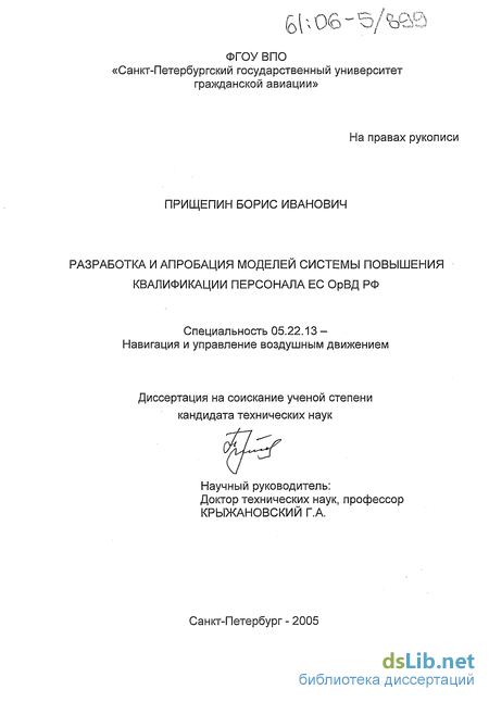 6. Крыжановский Г.А., Прищепин Б.И. Модельный тренажер для обучения руководителей ОрВД // Проблемы эксплуатации и совершенствования транспортных систем. Межвузовский тематический сборник научных трудов. СПб ГУ ГА. 2006. (0,37 п.л., принята к публикации).