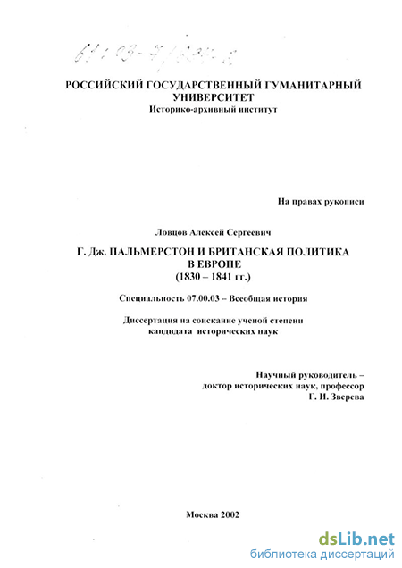 - Использование Г. Дж. Пальмерстоном системы «европейского концерта» в качестве инструмента внешней политики Велико британии (1830-1841 гг.)