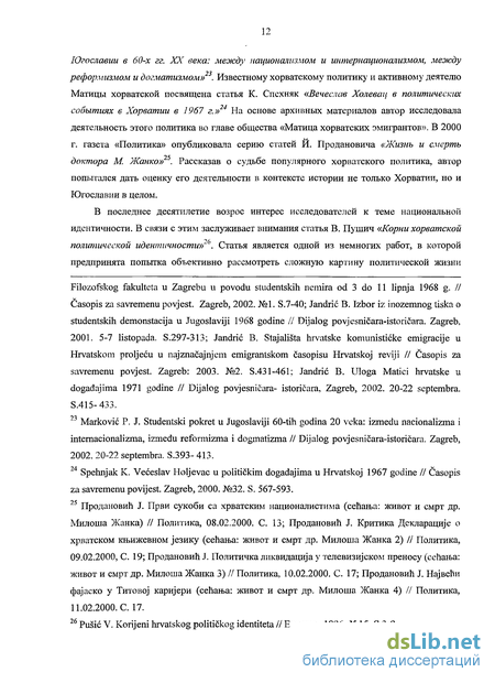 А между тем исследуемые в диссертации события не только имели сложный и многоплановый характер, но и оказали влияние на последующее развитие Хорватии и СФРЮ в целом. Именно на рубеже 1960-х -1970-х гг. мы наблюдаем возникновение и развитие в Хорватии движения со своей внутренней структурой, признанными лидерами и оппозицией, конкретными целями и программами. Благодаря архивным материалам, новым опубликованным документам, воспоминаниям участников, появилась возможность установить причины и проанализировать предпосылки возникновения в недрах социалистической системы хорватского «массового движения», более детально изучить все обстоятельства, связанные с событиями конца 1960-х - начала 1970-х гг.